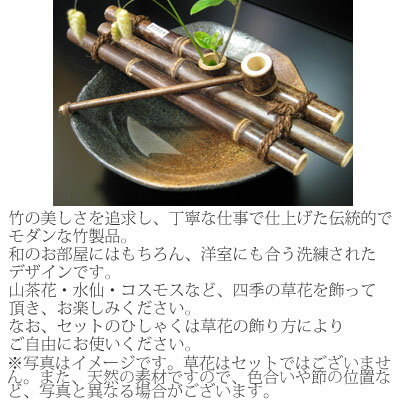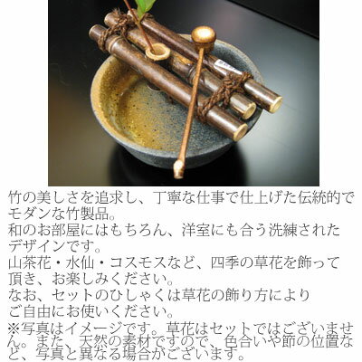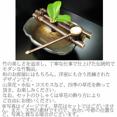 竹細工 花筏中セット(ひしゃく付)花器 飾り インテリア 花瓶小物 和風 和雑貨 陶器 焼き物 器うつわ 一輪挿し 一輪ざし母の日 父の日 プレゼント ギフト