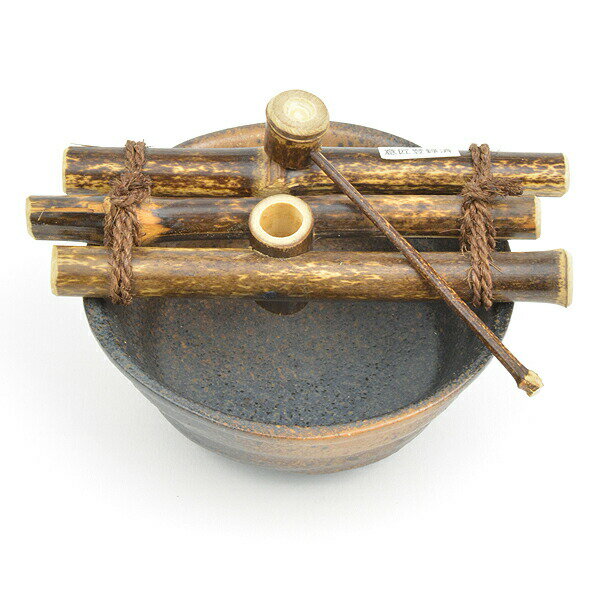 信楽焼 和風 おしゃれ つくばい 竹付き鉢 陶器つくばい 金魚鉢 めだか鉢 スイレン鉢 竹付き鉢 しがらきやき 手洗い鉢 花器 花入れ tu-0012