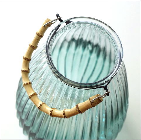 花瓶 フラワーベース ガラス 竹 おしゃれ シンプル モダン 花器 ガラスベース バンブーハンドル付ガラスベース
