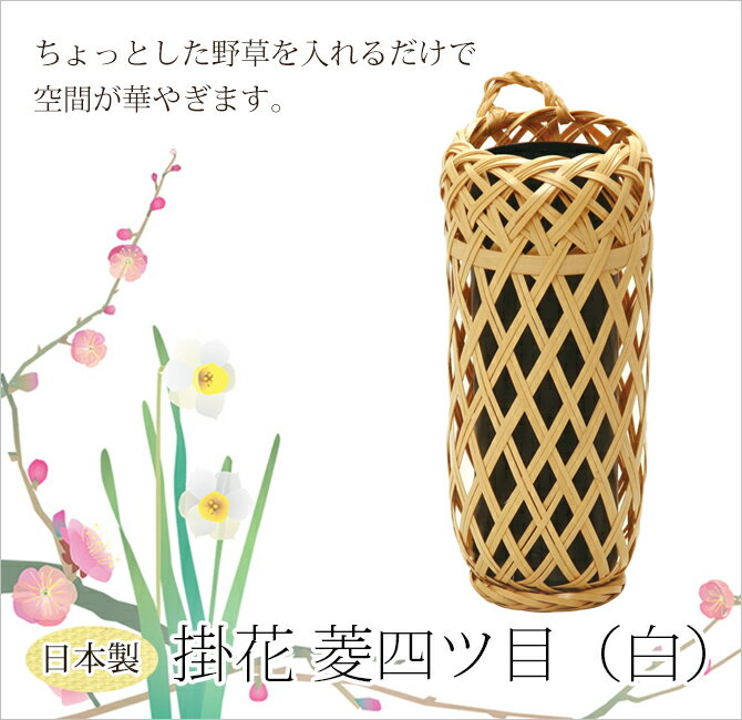 花器 生け花 竹かご 和風 オシャレ ギフト おすすめ 人気 竹製掛花 菱四ッ目(白) 61A-3624-HJ