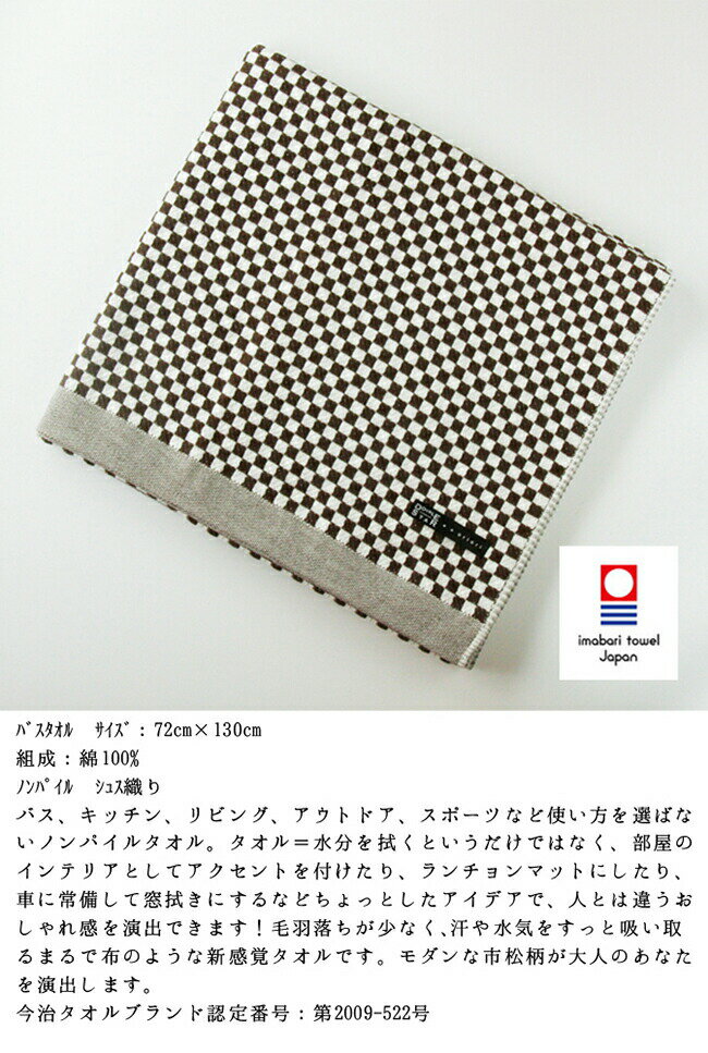 タオル=水分を拭くというだけではなく、部屋のインテリアとしてアクセントを付けたり、敷物に使ったり、車に常備して窓拭きにするなどちょっとしたアイデアで、人とは違うおしゃれ感を演出できます!モダンな市松柄だから使い方を選びません。